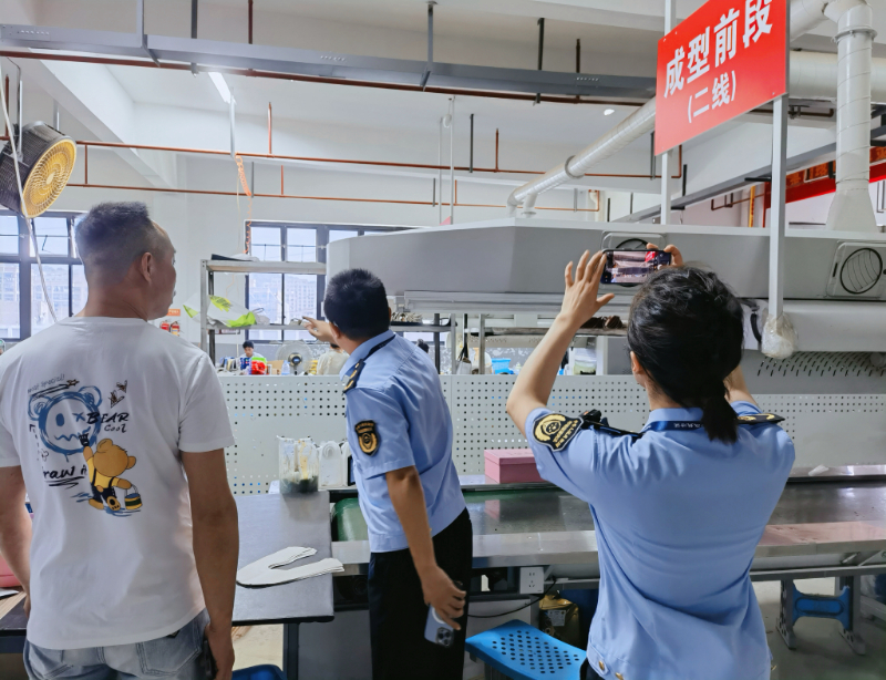 据了解,温州市鹿城区市场监督管理局于日前收到浙江某科技企业的专利侵权纠纷处理请求,称温州市某鞋业有限公司等6家企业涉嫌仿冒制造、销售、许诺销售其“制鞋生产线用装饰罩”外观设计专利产品。当执法人员对这些企业进行调查取证时发现,企业的涉案产品已安装在生产线上,面临体积庞大难拆卸、设计细节难固定、证据状态难保全的“三难”困境。