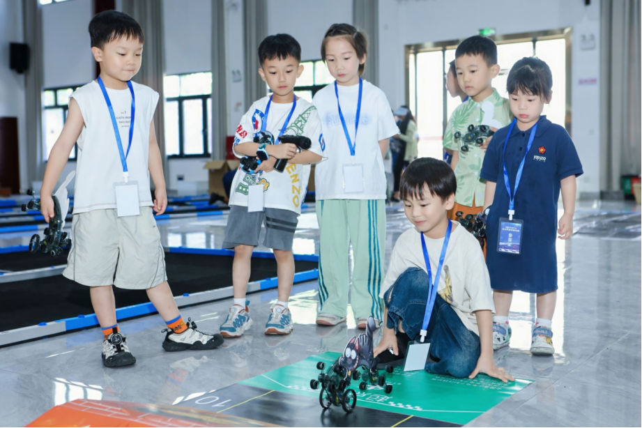 为期一天半的赛事亮点纷呈:无人机竞速赛上,小小飞手操控飞行器完成360度翻转、穿越障碍等高难度动作,空中轨迹与远处葡萄园的翠绿波浪相映成趣;空气动力车竞速赛中,选手们调整车身角度,车辆风驰电掣,速度与策略的博弈引发现场欢呼;三对三足球赛里,小将们攻防迅捷,默契配合让礼堂内掌声不断;二对二台球团体赛中,选手们时而瞄准时而交流战术,团队协作尽显……