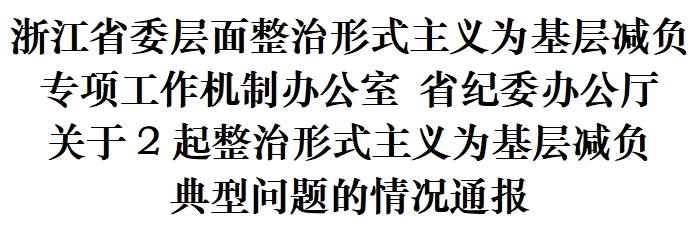 日前,浙江省委层面整治形式主义为基层减负专项工作机制办公室会同省纪委办公厅对2起整治形式主义为基层减负典型问题进行通报。具体如下:
