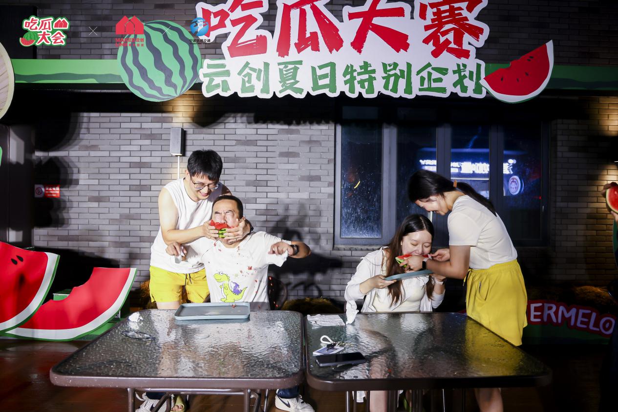 活动现场,随着裁判一声令下,选手们埋头疾啃,西瓜汁水四溅,欢笑声与加油声此起彼伏。非遗集市内,传统技艺在灯火下焕发新生。“在这里不仅能玩游乐设施,还能接触到非遗文化,体验很丰富。”带着孩子体验糖画的赵先生说。