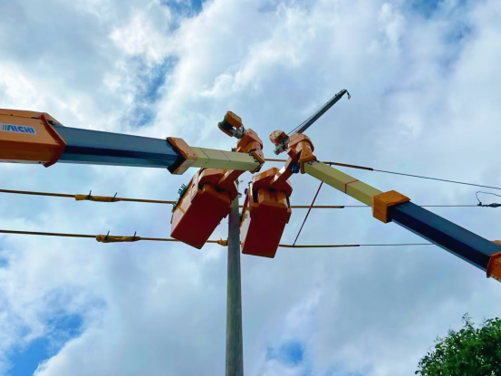 相较于传统需全线停电的立杆作业模式,此次作业通过创新应用带电作业技术,最大限度地降低了对居民生活与企业生产的干扰,体现了供电保障工作的高效性与连续性。
