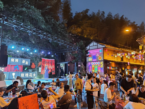 夜幕降临,晚风轻拂,携夏夜凉意走进赤石村小弄坑特色街区“嗨周末”活动现场,游人如织,美味烧烤、奶茶饮品、动人音乐、潮玩派对、摄影打卡一应俱全。“没想到一个村子会这么热闹。”来自温州的高先生说,之前他在网上做过攻略,就被赤石村吸引,这次趁着周末带着一家人专程来赤石乡游玩,直叹赤石夜生活丰富。