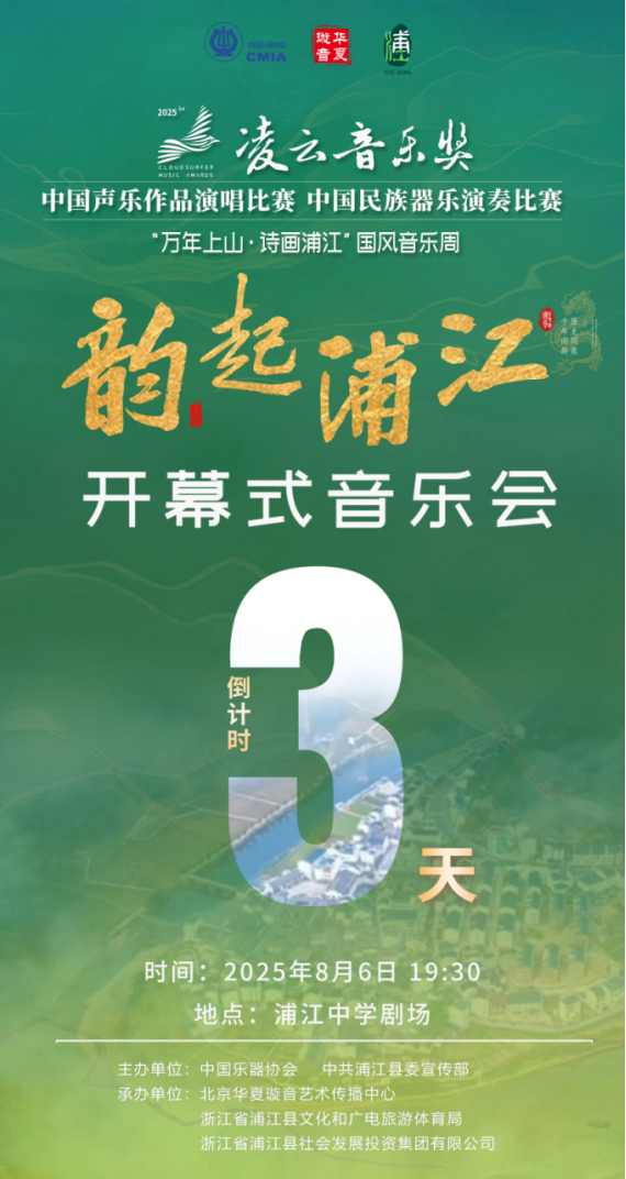 8月2日至8月10日,由中国乐器协会、浦江县委宣传部共同主办的2025“凌云音乐奖”中国声乐作品演唱比赛及中国民族器乐演奏比赛在浙江浦江举行。除精彩赛事之外,还将同步举办“万年上山·诗画浦江”国风音乐周,涵盖多场音乐会、雅集和研学活动,吸引海内外的国风音乐爱好者广泛参与。