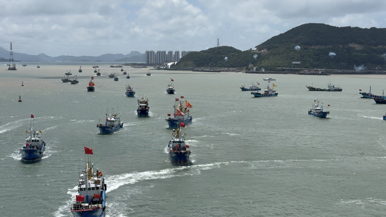 8月5日中午12时,伴随着嘹亮的汽笛声,在浙江省舟山市普陀区沈家门渔港等港口,作业渔船浩浩荡荡迎着海风,破浪前行,正式拉开新一轮海上生产的序幕。