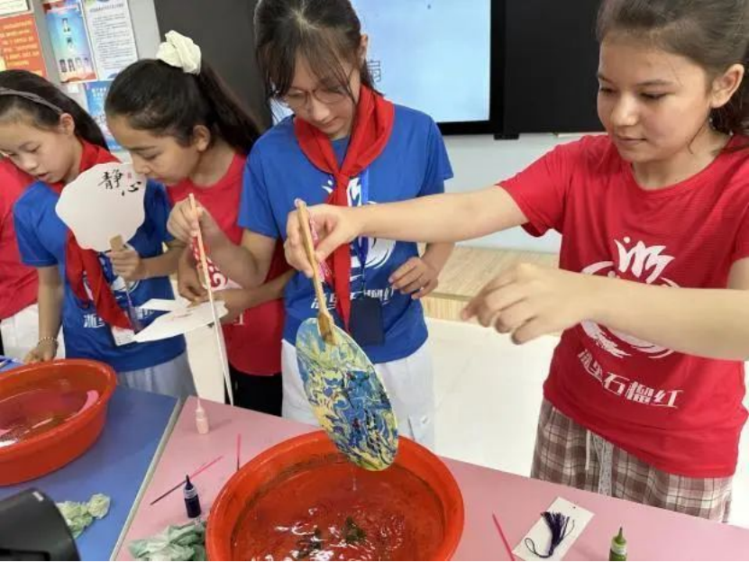 破冰联谊活动中,自我介绍拉近距离,才艺展示绽放青春风采,知识问答点燃全场热情。绍兴教师带来的传统漆扇体验课程上,阿瓦提师生执笔蘸漆,在木扇上描绘水乡景致,亲手触摸绍兴文化的细腻肌理、感受非遗技艺的独特魅力;美术互动课《我们的奖杯》里,两地学生围坐一桌,用五彩画笔共同勾勒友谊的模样,让创意在协作中碰撞;音乐教室里,同跳一支热情的民族舞,让欢声笑语与轻快舞步交织,情谊在旋转中悄然升温。