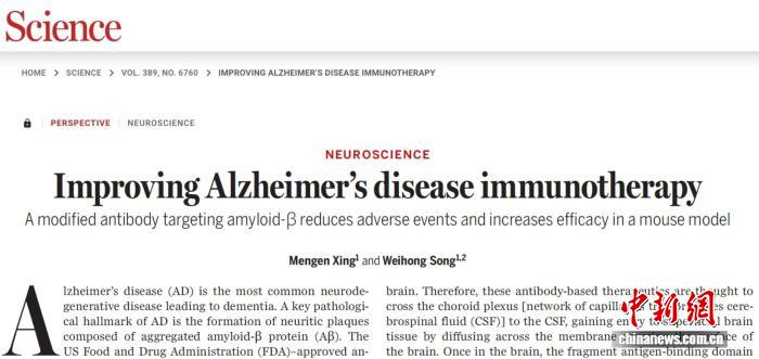 2025年8月8日(纽约时间8月7日),宋伟宏受邀在《科学》发表学术评述文章《改善阿尔茨海默病免疫治疗》,对Zuchero团队同期同刊发表的科研成果——关于“转铁蛋白受体靶向抗淀粉样蛋白抗体增强脑递送并减轻ARIA”进行了深度剖析。