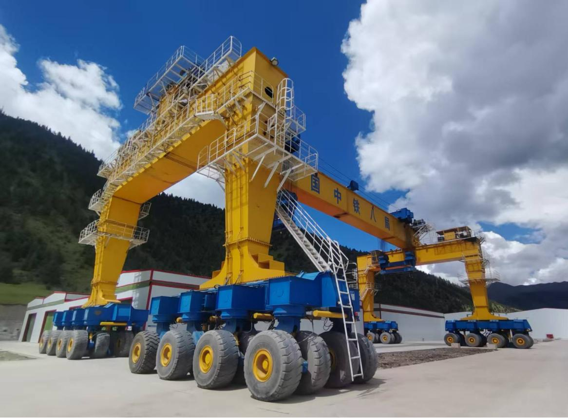 目前,川藏铁路雅安至林芝段正在建设中,其中涵盖了至关重要的昌都段。随着施工的不断深入,大型起重机械设备越来越多,其中,900T提梁机,作为高架铁路施工环节不可或缺的重要组成部分,在川藏铁路建设中用于大型浇筑成型桥梁片提升、运转、吊装。本次检验的起重机额定起重量为900T,其燃油与液压系统较为复杂,检验人员克服了4000多米海拔引起的高原反应,细致地对机械结构、液压管路系统、电气控制系统进行逐条检查,并对该台起重机的燃油发动机进行运行试验。经验证,该台起重机可满足高海拔运行条件。