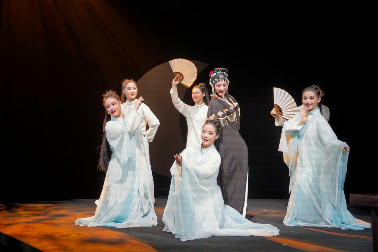作为高校原创先锋越剧,《颜氏夜奔》的创新探索同样引发关注。该剧取材于梨园戏经典《节妇吟》,由浙江艺术职业学院戏曲学院、设计学院、舞蹈学院等协同打造,作品在坚守越剧袁派、尹派唱腔精髓的同时,巧妙吸纳梨园戏身韵与现代舞元素,借“月景”光影变化映照人物内心的波澜;造型设计在传统旦角的雅致风骨中,更融入现代审美隐喻,让经典故事焕发青春张力。