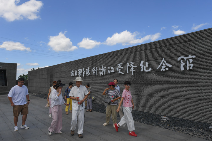 8月15日,人们来到抗日战争胜利浙江受降纪念馆参观。组图均为新华社记者翁忻旸摄