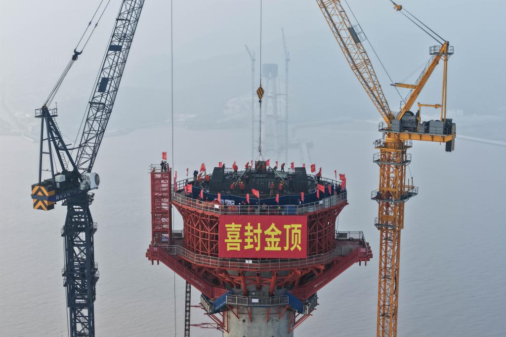 甬舟铁路西堠门公铁两用大桥首座主塔封顶
