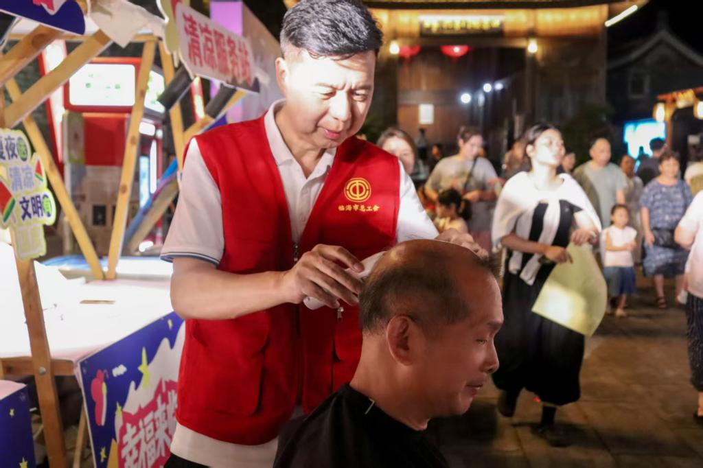 8月20日,“幸福来临·文明夜市”在浙江台州府城开市。文明宣讲、文艺演出及爱心义剪、中医义诊、非遗体验、安全教育宣传等摊位吸引现场群众参与打卡。让文明新风为游客消暑纳凉,也让文明新风浸润人心。