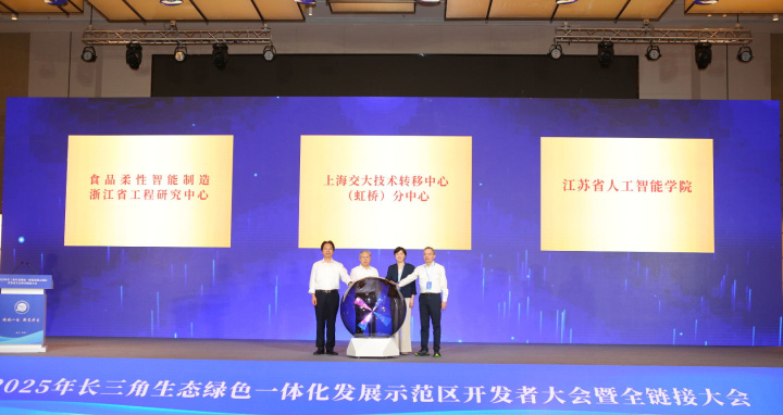 同时,上海交大技术转移中心(虹桥)分中心、江苏省人工智能学院、食品柔性智能制造浙江省工程研究中心三个项目揭牌。其中,上海交大技术转移中心(虹桥)分中心将通过知识产权运营和多种产学研用合作模式,提供专业的市场化科技成果转移转化服务;江苏省人工智能学院将依托苏州大学未来科学与工程学院建设,培养符合时代发展与国家需求的“新工科”交叉融合拔尖创新人才;食品柔性智能制造浙江省工程研究中心将开展“人工智能+”行动,打造具有国际竞争力的食品智能数字产业集群。