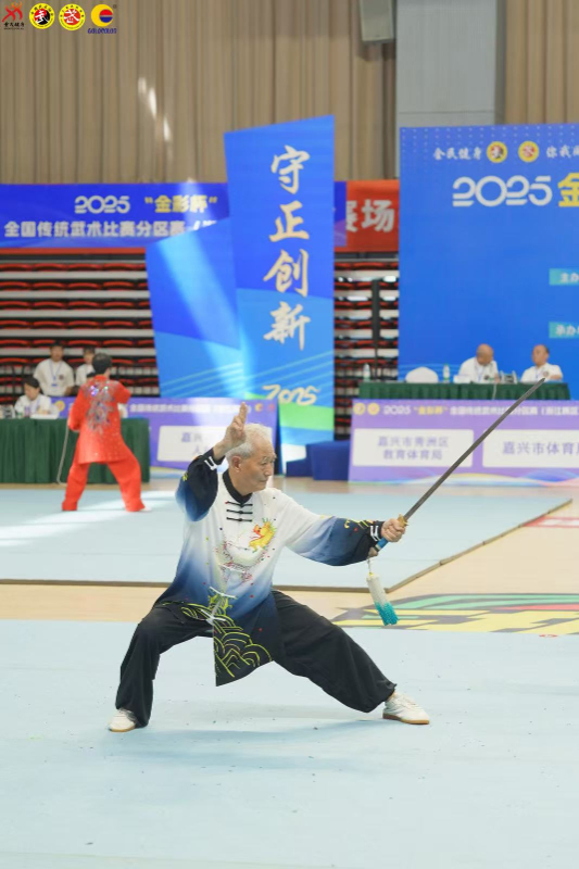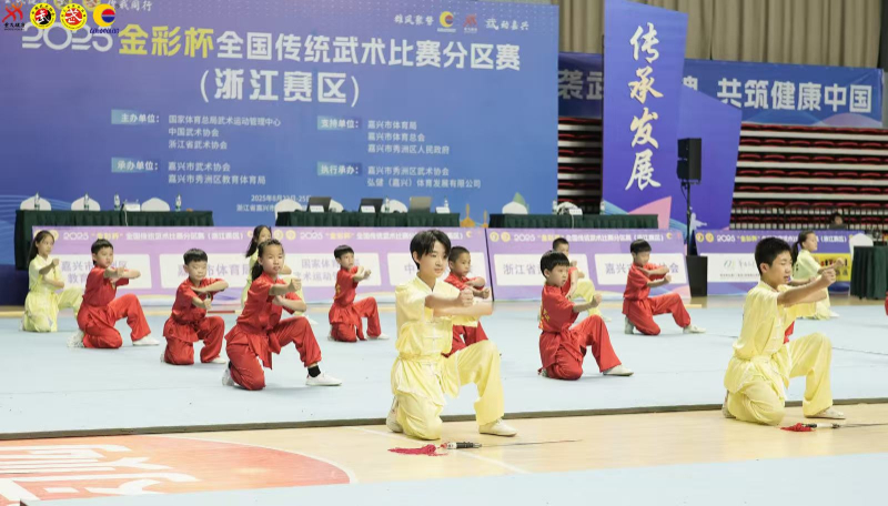 近日,在浙江省嘉兴市秀洲区秀湖全民健身中心,武术爱好者齐聚一堂,以武为媒,共赴一场热血与传承的盛会——2025年“金彩杯”全国传统武术比赛分区赛(浙江赛区)。来自全国各省的111支代表队、1200余名武术精英齐聚一堂,在这座历史文化名城上演了一场力与美、刚与柔交织的武林盛会。