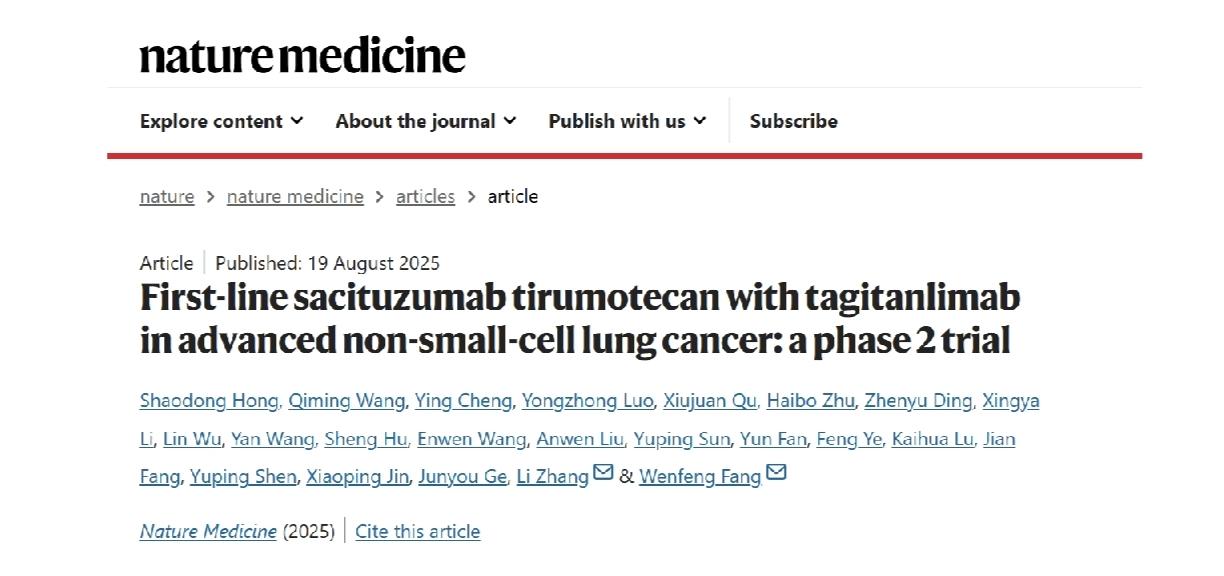 据了解,这是该团队继2025年4月10日在《自然·医学》发布芦康沙妥珠单抗针对经治晚期非小细胞肺癌的Ⅰ/Ⅱ期数据、6月5日在《英国医学杂志》公布更新结果后,第三次以“中国方案”登陆国际顶刊。