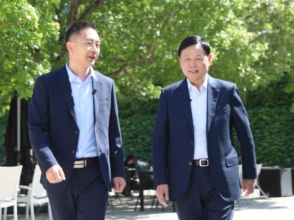 徐兵河(右)接受新华社记者采访。新华网 陈杰 摄