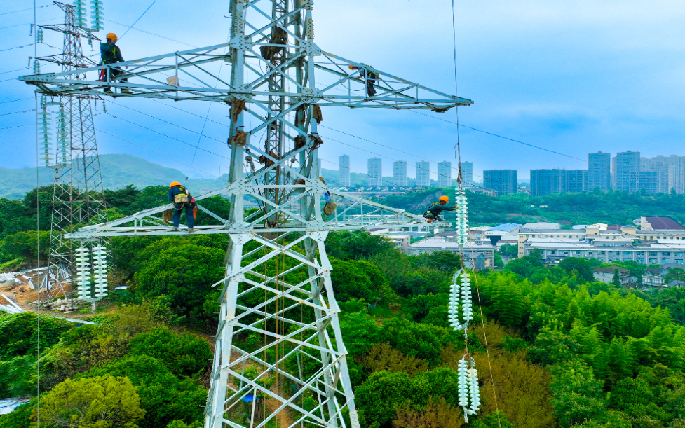 自9月8日步入立塔阶段以来,面对复杂的山地地形,施工团队迎难而上,采用了稳妥可靠的抱杆组立施工工艺。“在山地环境下开展作业,安全与质量是我们坚守的底线。尽管抱杆组立方式在一定程度上影响了作业效率,但它能更好地适应复杂地形,确保施工过程安全可靠。”工作负责人尹金山说。