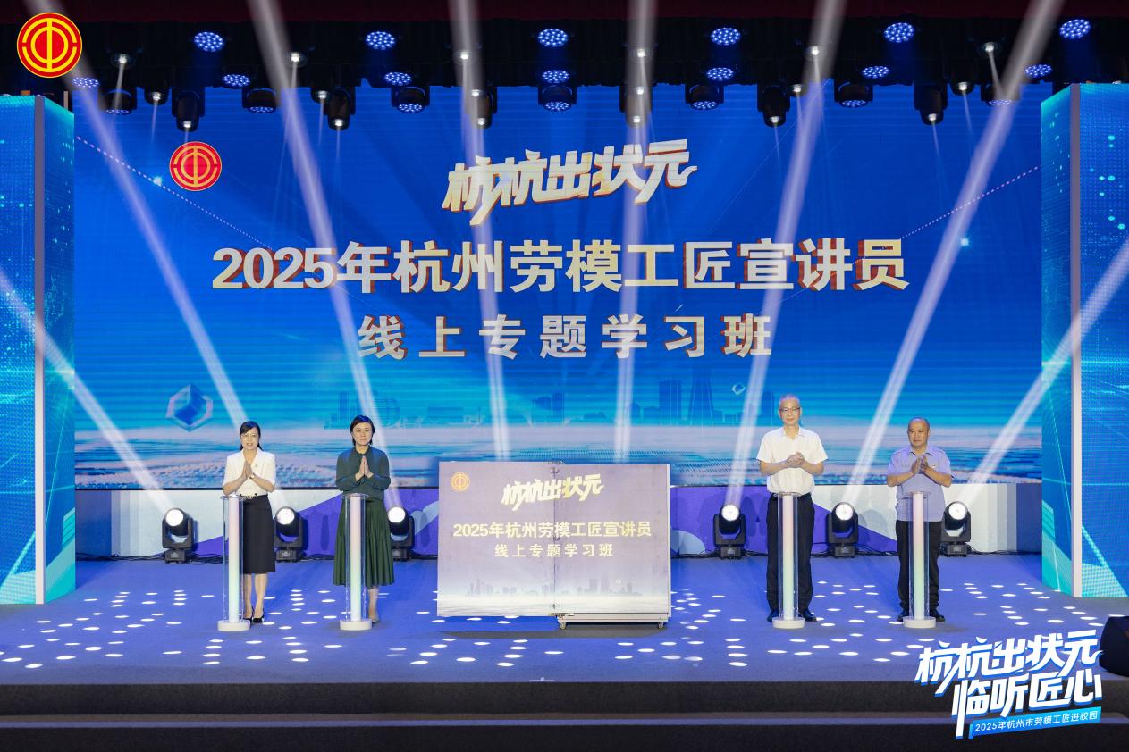 活动现场,杭州劳模工匠宣讲员线上专题学习班正式启动。本次学习班由杭州市总工会与中国工人出版社联合策划,是“职工之家”APP的“学习强会”系统内首个专为劳模工匠宣讲员打造的培训班,也是杭州在探索“中国工人大思政课”创新实践中的又一次重要迈进。同时,第四届“天目工匠”也正式发布。