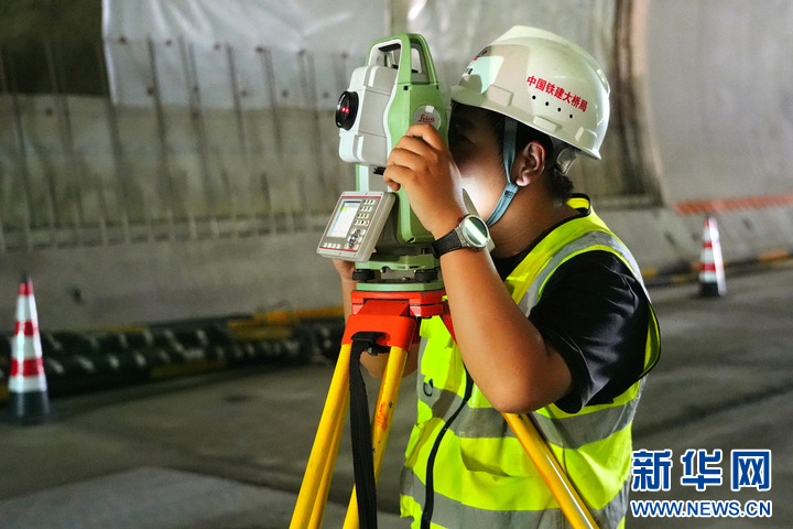 9月17日,工程技术人员在甬舟铁路陆家二号隧道爆破后进行围岩稳定性监测。