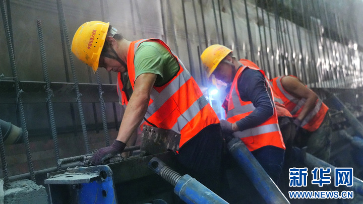 9月17日,建设者在甬舟铁路陆家二号隧道内进行仰拱衬砌模板打磨作业。