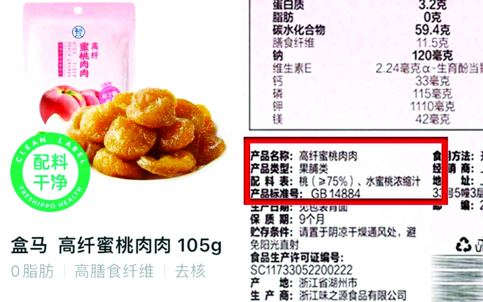 记者在一些电商平台搜索发现,配料表干净成为搜索热词和评价高频词汇,在淘宝平台上,“配方只有杏”的农科院酸甜金杏干回头客10万+,原果烘干的紫苏黄桃干两小时内就有60人购买;低温烘焙的仙居杨梅干号称孕妈都能随便吃……