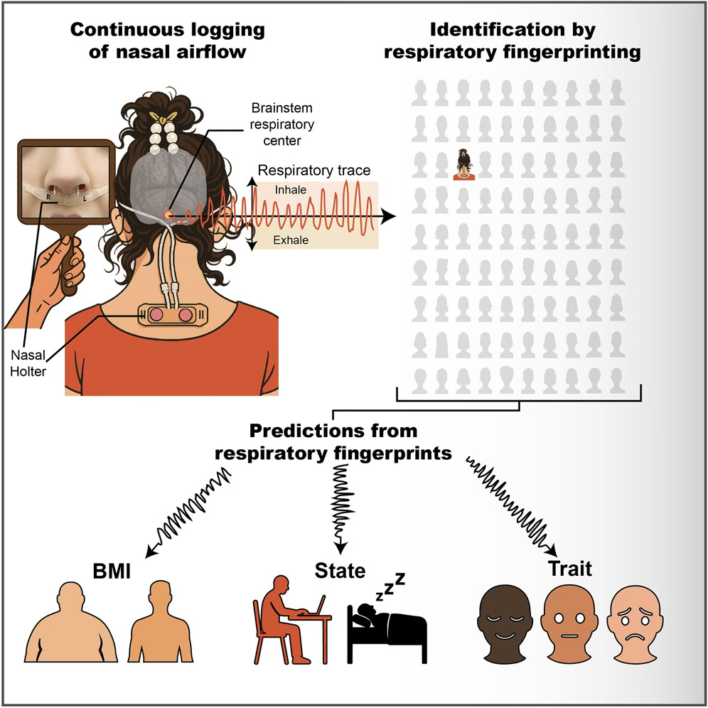 既然每个人的脑都是独一无二的,那么一个自然而然的问题就出现了:由脑驱动的长期呼吸模式,是否也同样独特?换句话说,呼吸模式是否像指纹一样,可以用来识别一个人的身份呢?