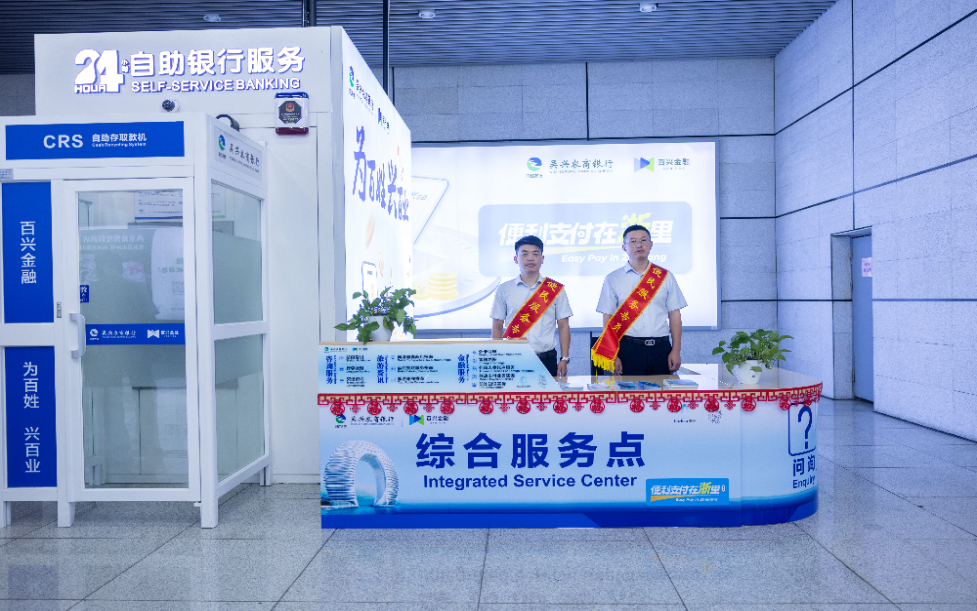 今年7月以来,人民银行湖州市分行联合南太湖新区相关部门协同发力,指导吴兴农村商业银行落实建设工作,耗时2个月在湖州高铁站出站口人流密集处设立了集金融与便民等多元服务为一体的综合化服务点。
