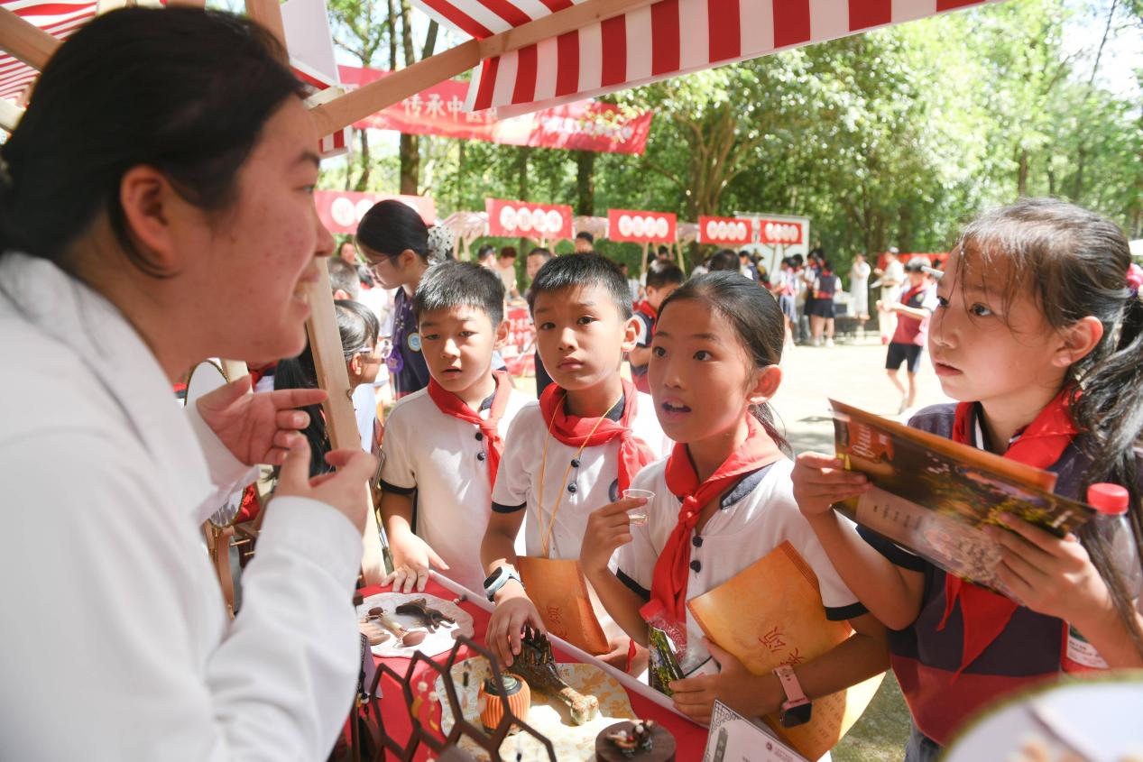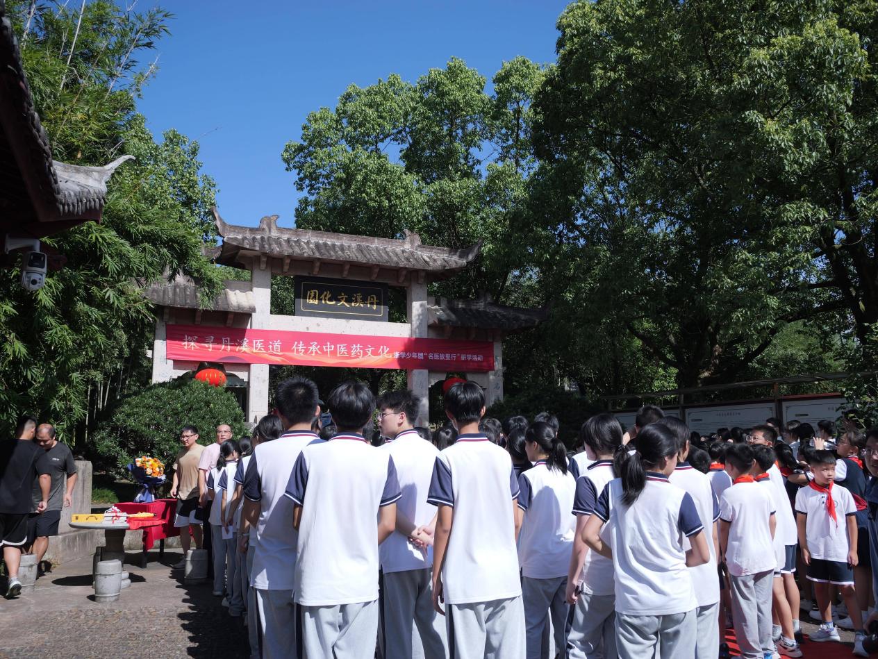 9月27日,浙江义乌赤岸镇东朱村的丹溪文化园内,来自浙江中医药大学、义乌市赤岸小学、赤岸初中、金华丹溪小学的150名大中小学生的身影穿梭其中,一场“探寻丹溪医道”的研学活动正在这里启程。本次活动将“一代医宗”朱丹溪从故事里“请”出来,让学生们用看、听、做、玩的方式,触摸中医药文化的温度。