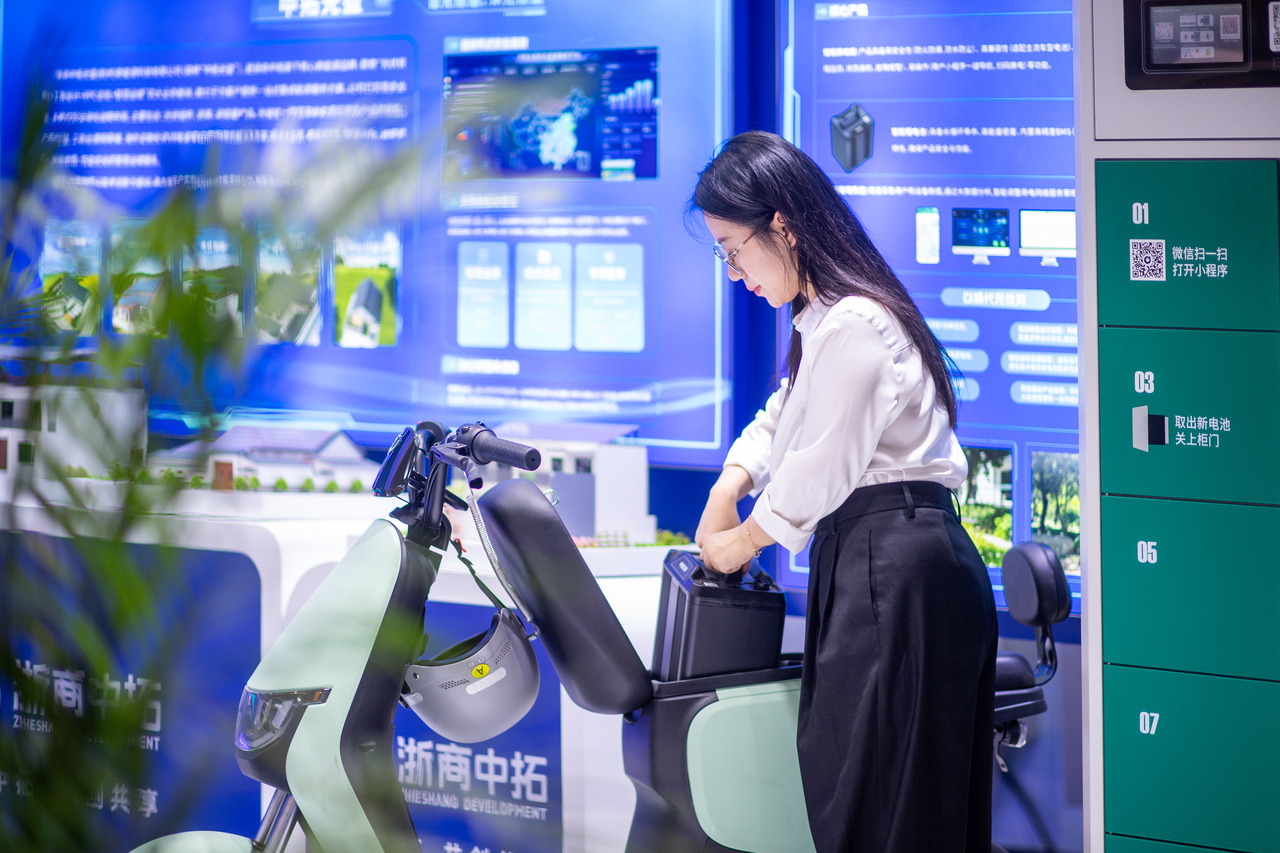 展会现场,中拓芯享全民换电项目同样吸引目光。每一块电池都内置BMS(电池管理系统),可实时监测电压、温度、充放电状态。截至目前,项目已在杭州、绍兴等多城市落地,为数万电动自行车用户提供便捷服务,为构建可持续城市交通体系贡献可复制方案。