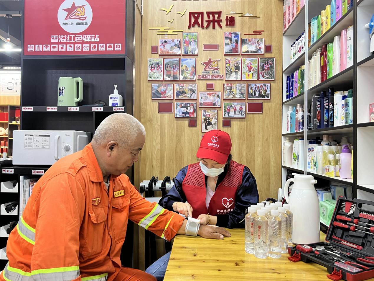 以“香溢红色驿站”为核心载体,丽水市局联合全市热心零售客户,将驿站服务从“日常便民”升级为“四季关怀”:夏日里,备好矿泉水、解暑药、清凉扇,为户外工作者送上“清凉慰藉”;冬日里,煮好姜茶、提供暖手宝、开放休息区,用“温暖守护”抵御严寒;重阳节前后,还会针对老年劳动者开展免费理发、健康问诊等专项服务。除了物资保障,驿站还常态化提供手机充电、血压测量、应急药品取用等便民项目,让“渴了能喝水、累了能歇脚、冷了能取暖、热了能纳凉”的服务承诺落到实处,更在潜移默化中传递着“人人为我、我为人人”的互助风尚。