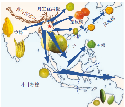 800万年前柑橘属的祖先自喜马拉雅山东南麓发源并逐步向亚洲和澳洲扩散(图片来源:参考文献[2])