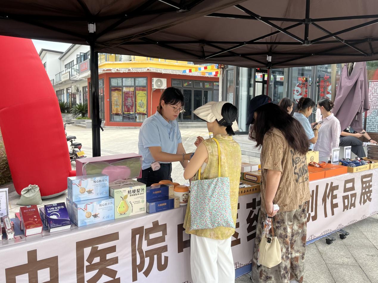 中医药文创产品制作体验区同样吸引了大批参与者。香囊制作台前,大家穿针引线,将艾草、薄荷等药材装入布袋,亲手制作专属养生香囊。中药手串和香牌制作体验更是“一位难求”。正在制作手串的周思贤分享道:“我做的这款含有紫苏和艾叶,艾叶可以驱蚊,紫苏还有安神作用,夏天佩戴非常实用。”