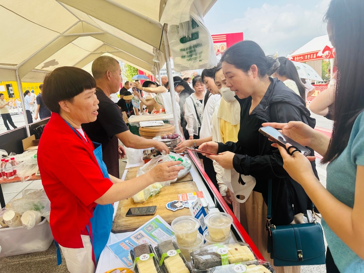 浙江药博会期间,一场以“八婺共富·供销联展”为主题的2025磐安风味供销汇活动在江南药镇养生博览馆广场同步举行。活动共设32个展位,分为“磐安本味·山珍飘香”和“八婺共富·供销联展”两大展区,不仅集中展示了磐安梅干菜、方前馒头、大盘发糕、麦饼、杨梅粿、水蒸饼等几十种本地特色小吃,更汇聚了兰溪杨梅酒、金华火腿、武义宣莲等来自金华市各县市区的优质农产品,为四方宾朋呈现了一场舌尖上的盛宴。
