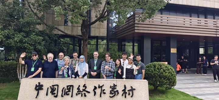 2025中国国际网络文学周期间,海外作家代表参访位于杭州的中国网络作家村。新华社记者余俊杰 摄