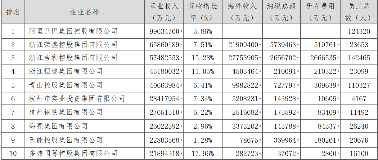 企业“头部”方阵进一步扩容。营业收入超过千亿元的企业达到33家,比上年增加2家。其中,阿里巴巴集团控股有限公司、浙江荣盛控股集团有限公司和浙江吉利控股集团有限公司稳居前三。更有绿城房地产集团有限公司、浙江卫星控股股份有限公司等企业营收增速超过30%,展现出强劲的发展势头。