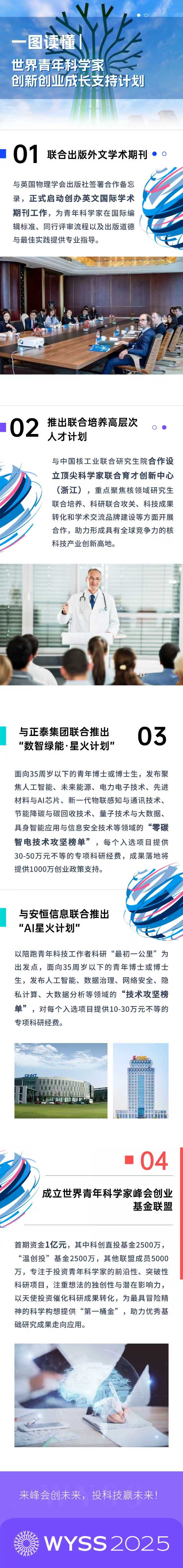 10月25日,2025世界青年科学家峰会全体大会在浙江温州举行,会上启动了“世界青年科学家创新创业成长支持计划”。该计划具体有哪些内容?让我们一图读懂。
