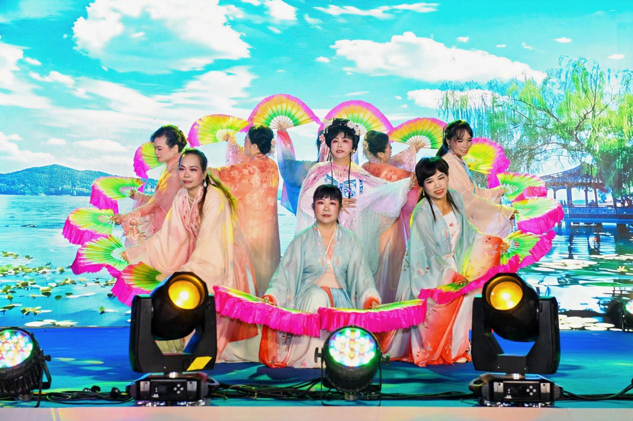 随着共裕村舞蹈队的扇子舞《西湖山水》开场,彩扇翻飞,舞步轻盈,全场气氛热烈。
