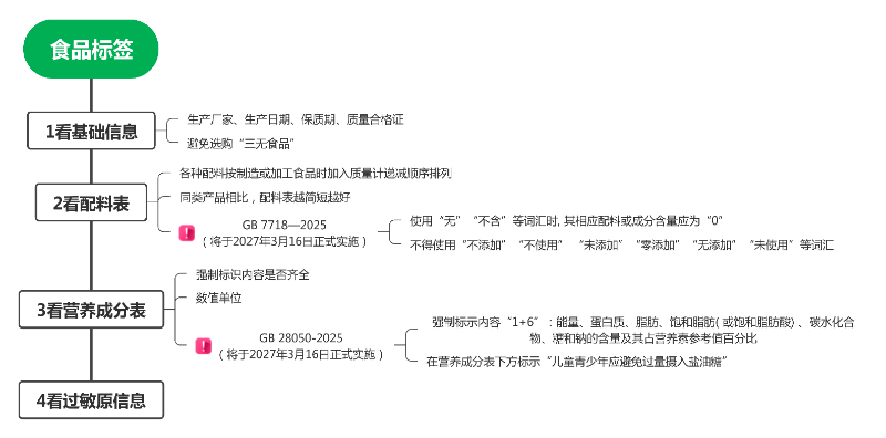 营养成分表——告诉你营养物质吃多少。关注能量、蛋白质、脂肪、钠和糖的含量,这才是影响健康的关键指标。需要注意的是,营养标签标示的“碳水化合物”是糖、寡糖、多糖的总称,标示的“糖”特指食品中果糖、葡萄糖、蔗糖、麦芽糖、乳糖之和,并且新版GB 7718-2025已禁止使用“零添加”“不添加”等误导性声称。