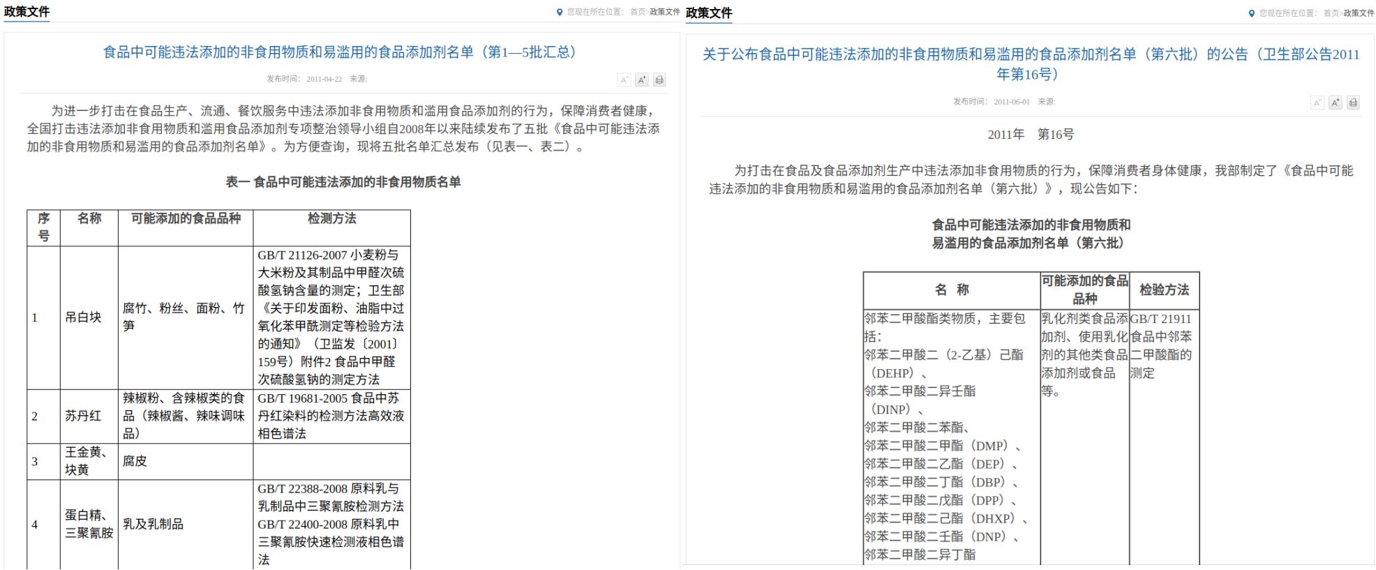 为进一步打击在食品生产、销售、餐饮服务中违法添加非食用物质和滥用食品添加剂的行为,全国开展了一系列专项整治,目前已陆续发布六批《食品中可能违法添加的非食用物质和易滥用的食品添加剂名单》,保障消费者“舌尖上的安全”。具体名单可在国家卫健委官方网站查询。