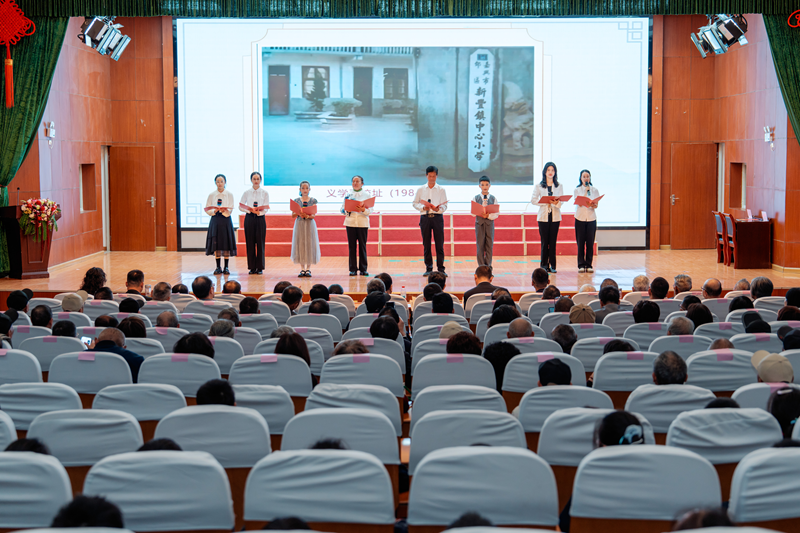 活动现场,新丰镇中心小学与杭州第十中学签订友好结对协议,两所同样由周士涟先生创办的百年学府跨越时空再次相遇,将在资源共享、优势互补、协同育人方面展开深度合作。退休教师、青年教师和学生代表共同朗诵的《新丰小镇大写教育》,在传唱二十余载的校歌《放飞梦想 伴育未来》的合唱声中,全场师生共同唱响对母校的深情祝福。