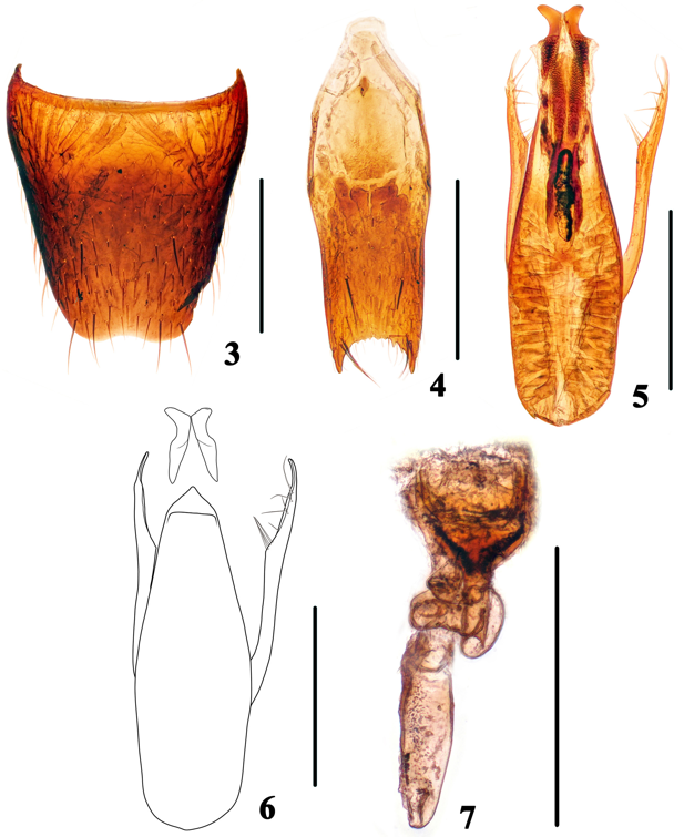 浙拟粗须隐翅虫成虫整体及局部特征图。