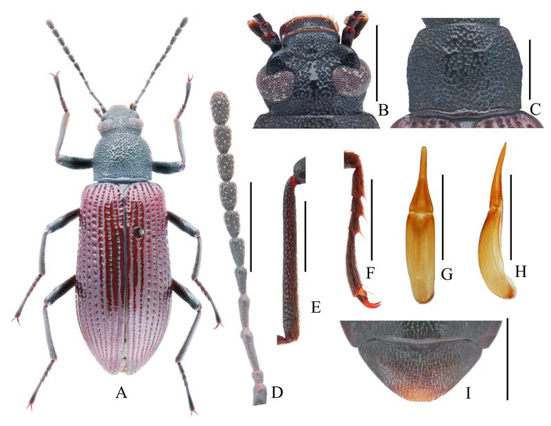 九龙树甲成虫整体及局部特征图。