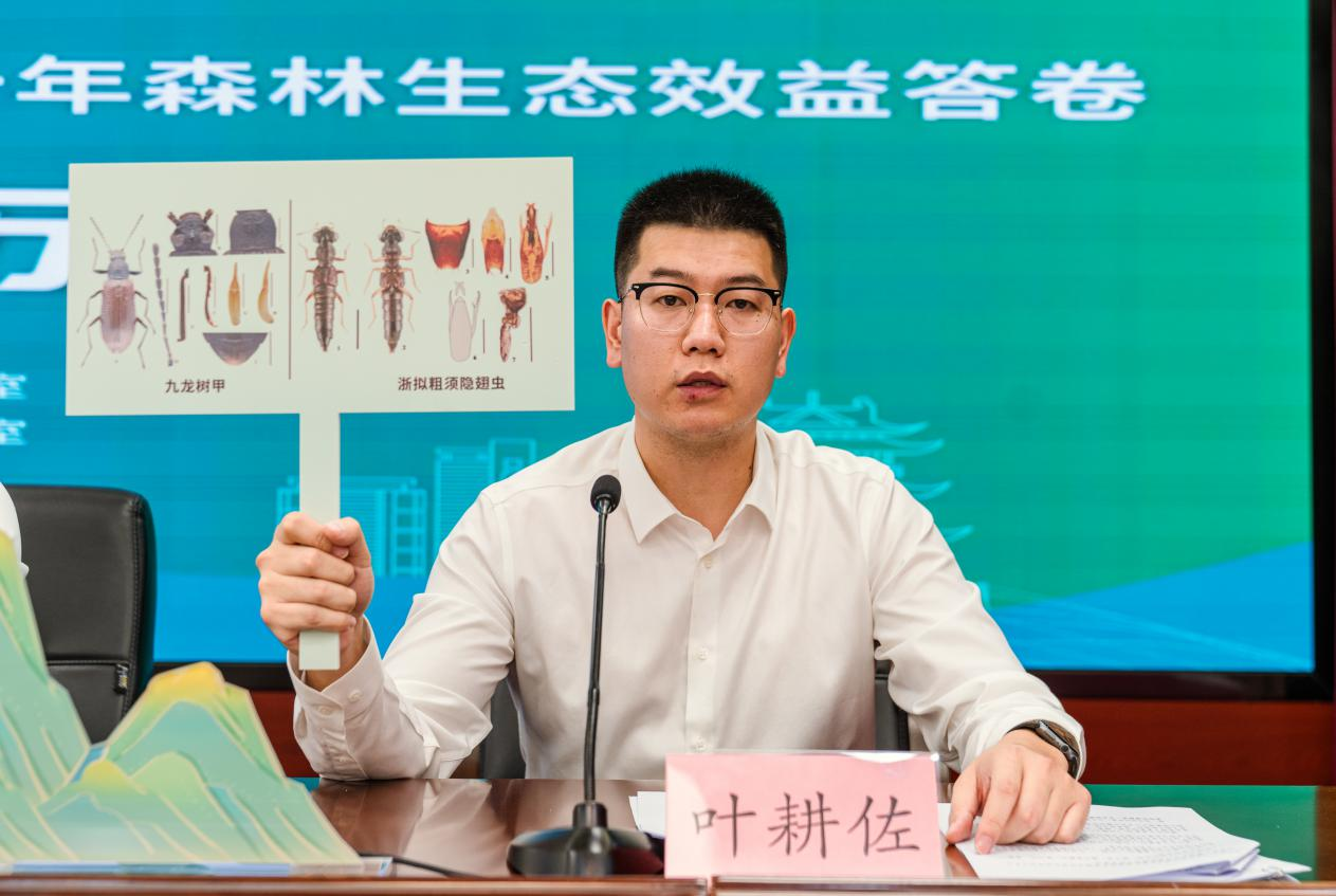 发布会上,丽水九龙国家湿地公园管理中心主任叶耕佐对中国科学院动物研究所生物多样性本底调查组在丽水九龙国家湿地公园调研考察中发现的两个全球新物种进行公布。这两个物种被正式命名为“九龙树甲”和“浙拟粗须隐翅虫”。在此之前,九龙湿地还发现了全球新物种九龙奇腿蚁甲、九龙隐沟蚁甲、梁氏丽蚁甲。