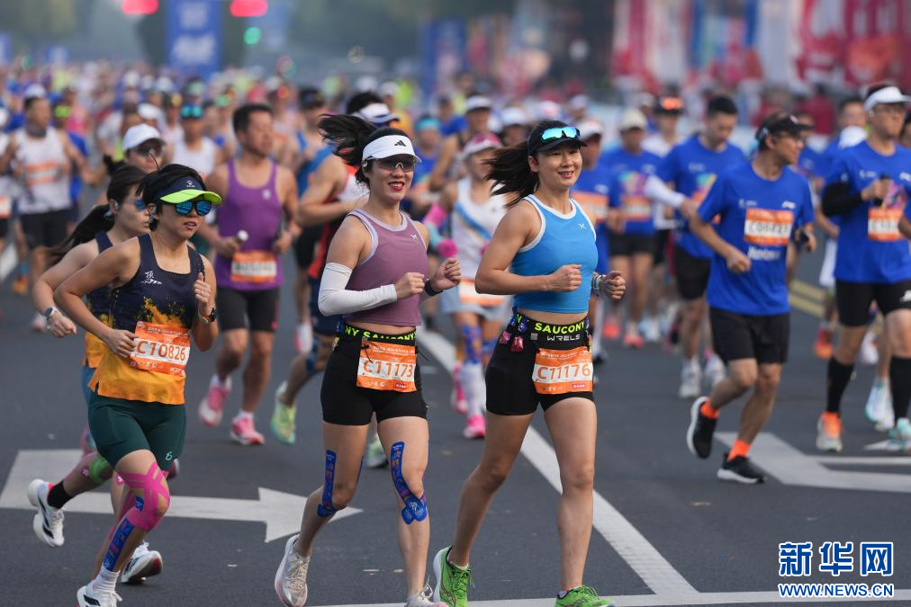 当日,2025杭州马拉松赛在黄龙体育中心鸣枪开跑。新华社记者 黄宗治 摄