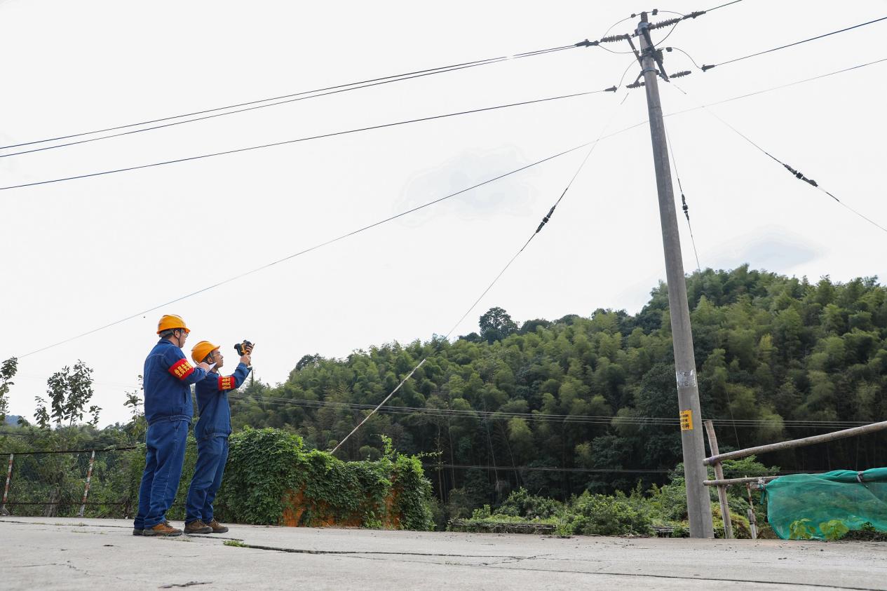 10月31日,在湖塘街道古城村,柯岩供电所的线路运维人员正沿着线路开展特巡。