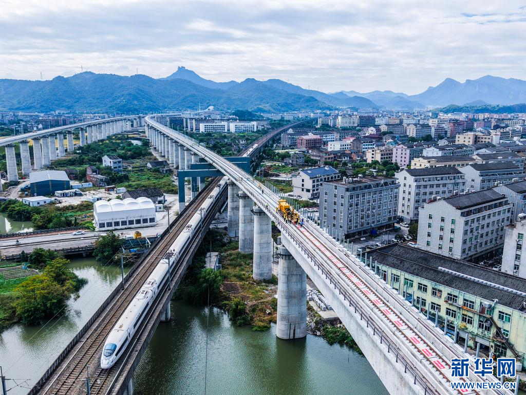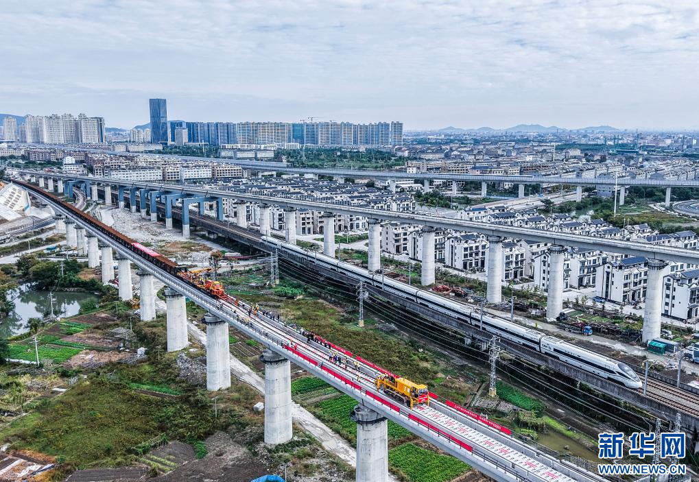 11月5日,杭台高铁温岭至玉环段正式启动铺轨作业,项目从土建施工阶段全面转入轨道工程建设阶段。