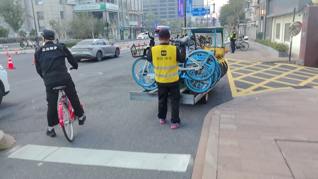 为让参赛选手和市民们能够更畅快地体验马拉松赛事的激情,在杭州市轨道交通运行和公用事业保障中心的统筹下,杭州市西湖区灵隐街道综合执法中队协调美团单车等共享单车运营企业全力保障起点及赛事周边路线的道路环境秩序。