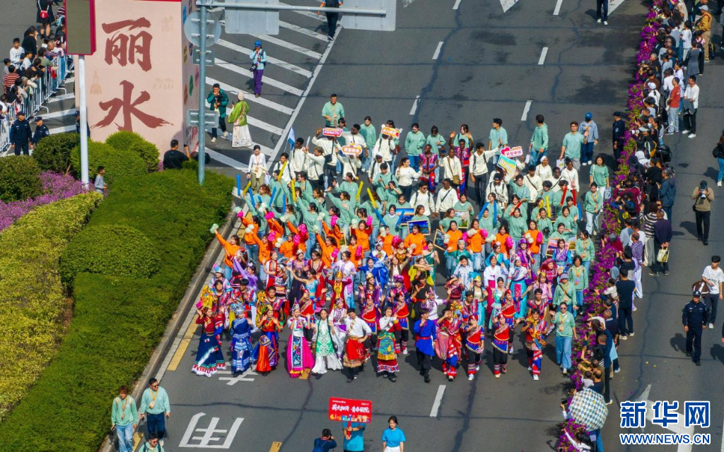 11月8日,在浙江省丽水市主城区,2025丽水摄影节“非遗巡街”启动,11支方阵沿2.8公里路线巡游,热闹开场。新华网发 丽水市新闻传媒中心供图