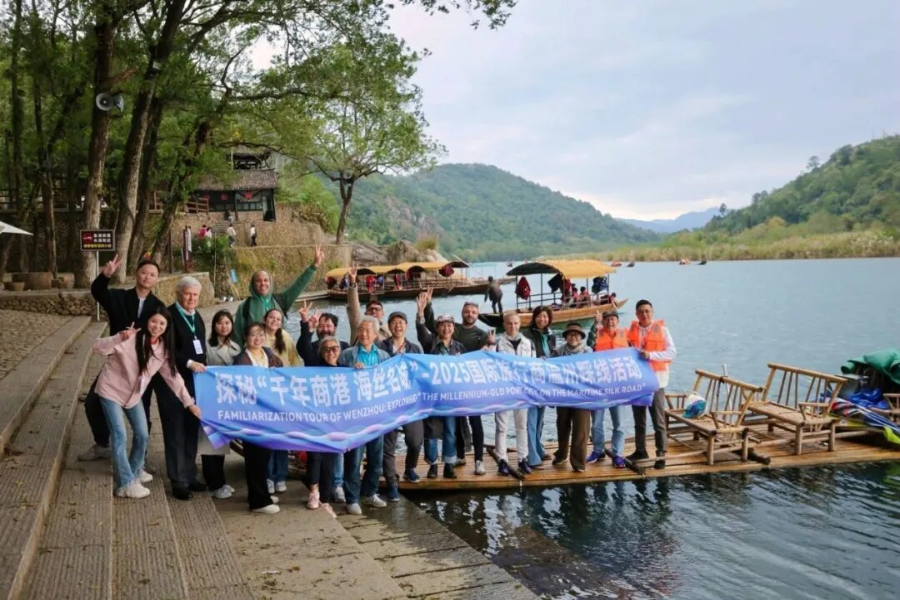 昨日,来自法国、意大利、韩国、泰国等10个国家和地区的30余位国际旅行商,循着千年海丝脉络,开启为期三天的温州深度踩线之旅。作为2025海丝城市(温州)国际旅行商大会的重要环节,首日行程串联雁荡山、楠溪江、芙蓉古村、丽水古街等代表性点位,让嘉宾在山水与烟火中,触摸温州的 “海丝印记”。