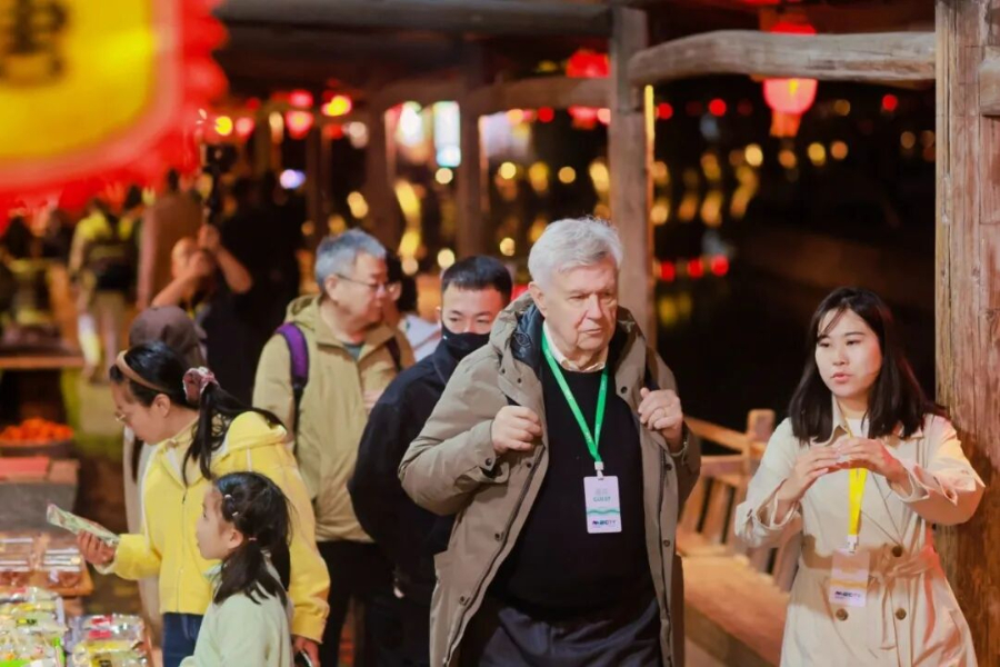夜幕降临,丽水古街换上 “盛装”。嘉宾们三三两两漫步其间,感受着 “小桥流水人家” 的婉约风韵,时而走进街边小店端详特色手工艺品,时而驻足聆听溪水叮咚,在慢时光中体会温州的夜之美。