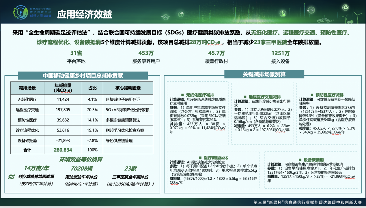 中国移动“健康乡村”项目减碳成效。